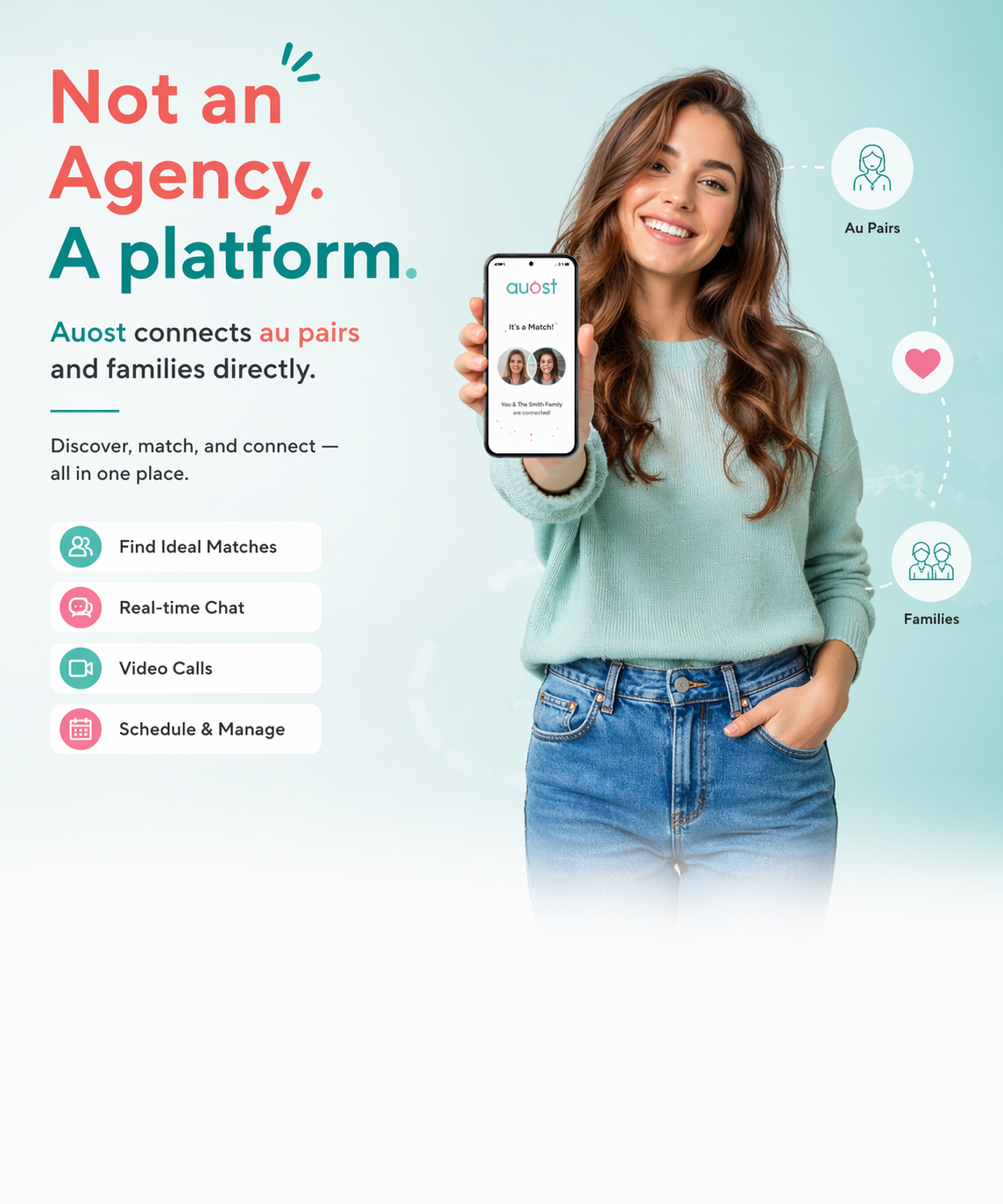 Instead of acting as an agency, auost is a modern digital platform that connects families and au pairs directly.